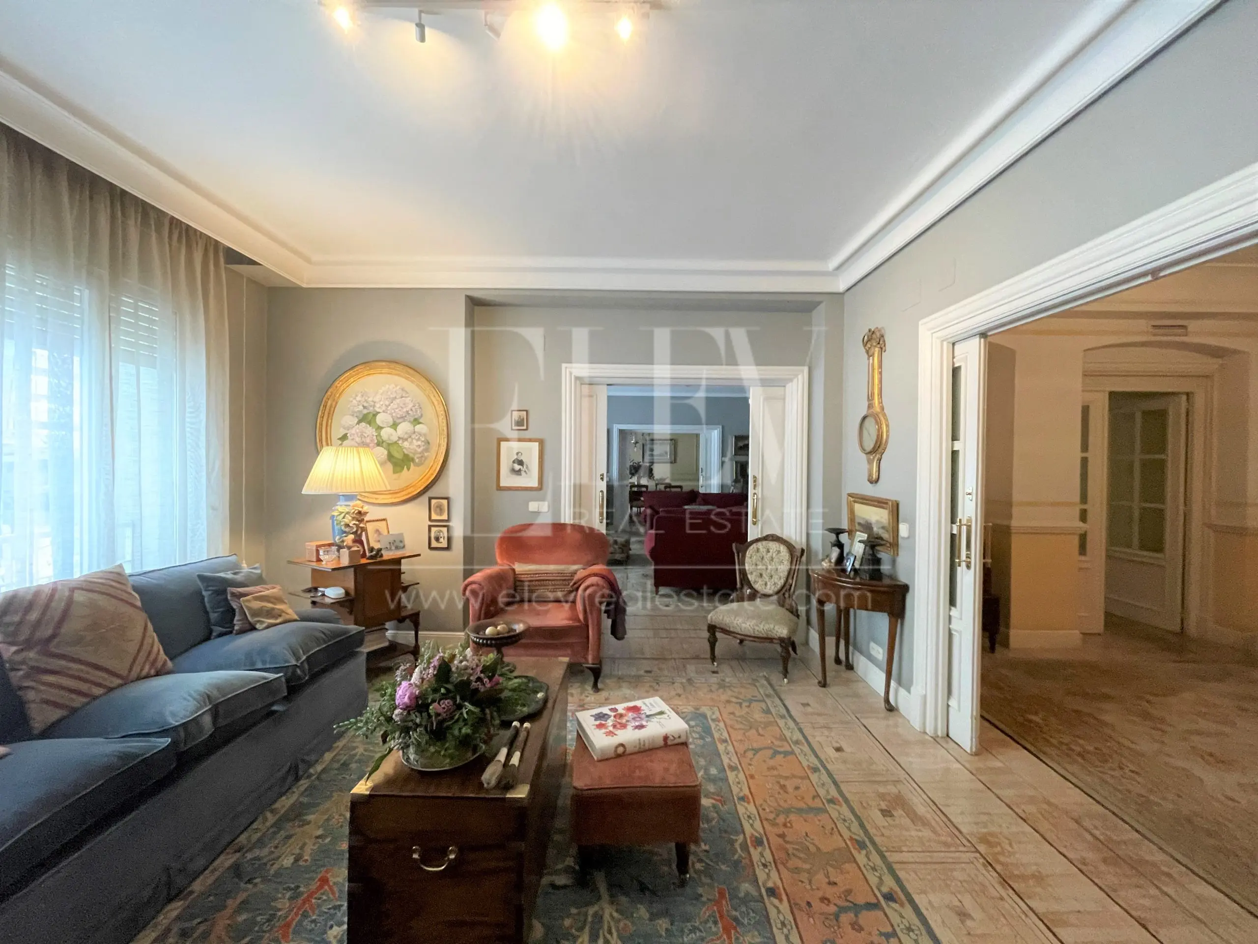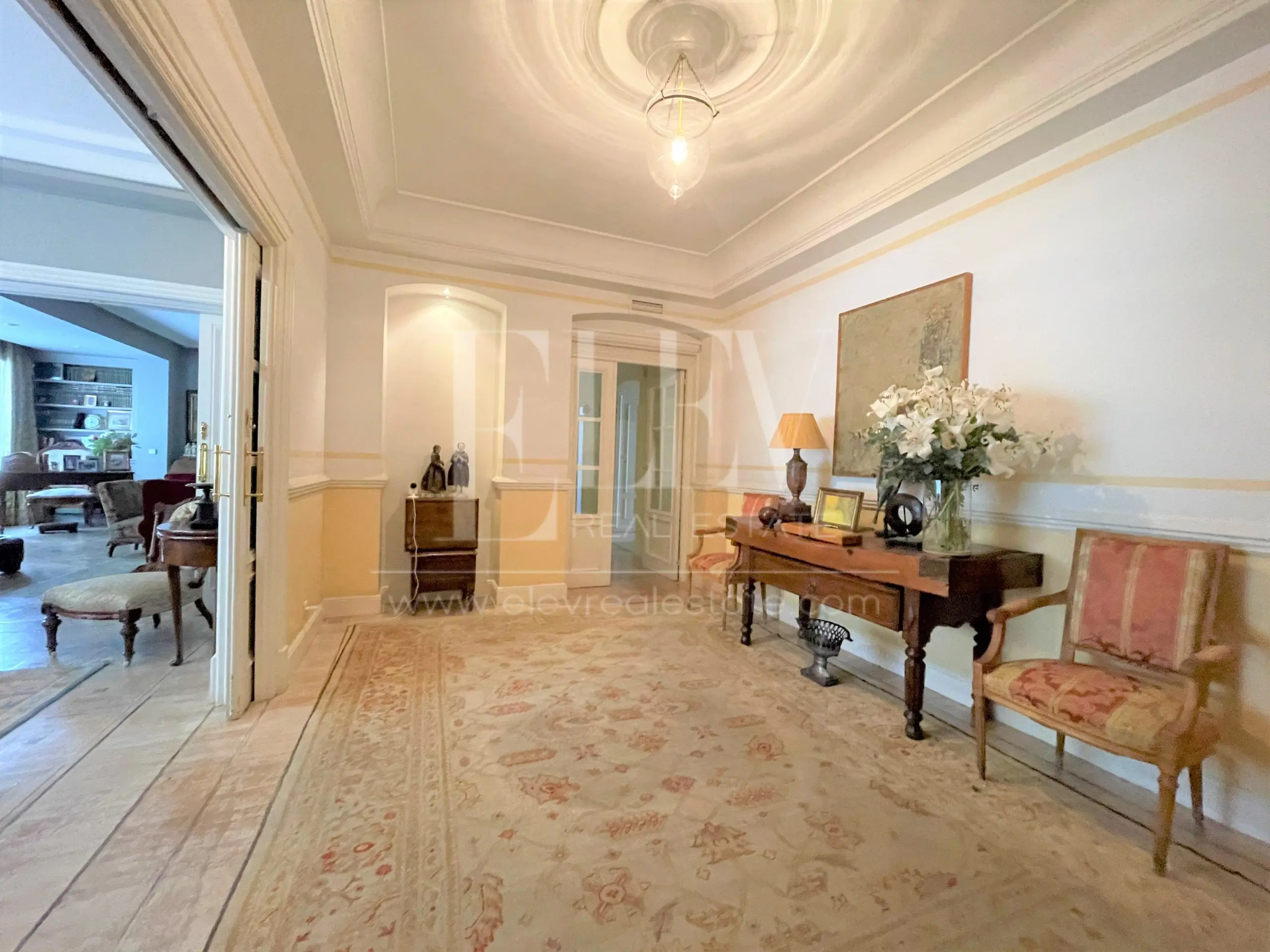 Elev Real Estate, presenta esta vivienda de estilo señorial en edificio representativo en una de las mejores zonas del Viso. Tiene una superficie construida según catastro de 314m². Se distribuye en gran zona de recibo que da paso al área de día, compuesta por una elegante zona de estar distribuida en tres ambientes, salón principal, comedor y cuarto de estar, conectados entre sí por puertas correderas. En la zona de servicio, cocina con office de día y dormitorio de servicio con cuarto de baño. En la zona de descanso 5 dormitorios (2 de ellos en suite) y cuartos de baño. La finca es representativa y cuenta con conserje. La vivienda cautiva por su espacio y luz, es ideal para familias también por su cercanía a los colegios más exclusivos de la zona.